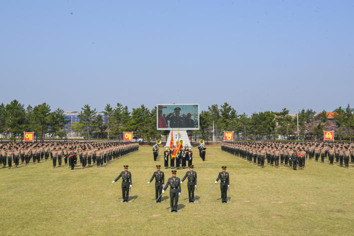 해병대 교육훈련단에서 열린 해병 1315기 수료식에서 신병들이 행사연병장에 도열해 있다. 해병대교육훈련단 제공