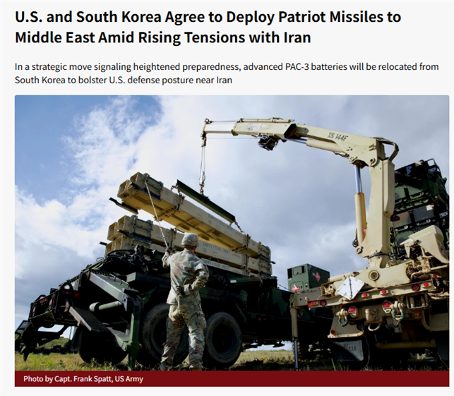U.S. Transfers Patriot PAC 3 Systems from South Korea to Middle East Amid Rising Tensions