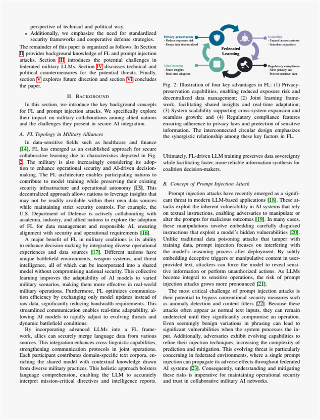 카이스트 연구진이 발표한 논문에 따르면, 연합학습(Federated Learning) 기반의 군사용 대규모 언어모델(LLM)이 새로운 보안 위험에 직면해 있다.