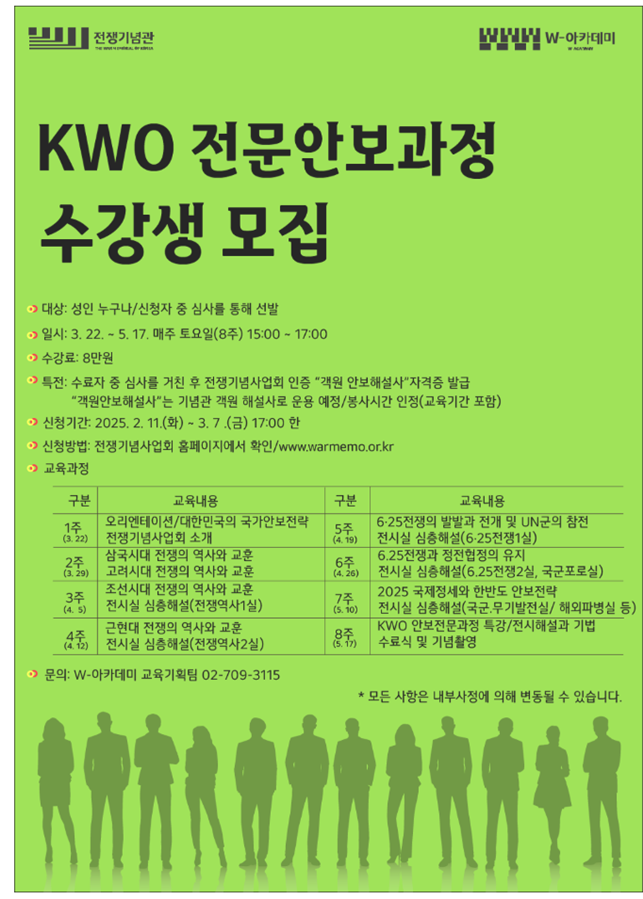 「2025 전쟁기념사업회 KWO 안보프로그램」 수강생 모집 공고 및 지원서 양식
