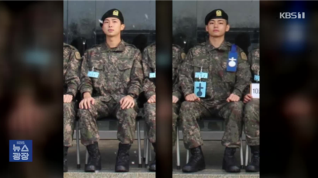 어제 육군훈련소 홈페이지엔 지난 11일 입소한 훈련병들의 사진이 올라왔고 그 속엔 방탄소년단의 RM과 뷔 씨죠.