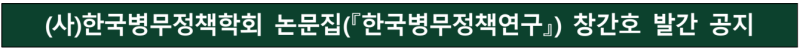 (사)한국병무정책학회 논문집(『한국병무정책연구』) 창간호 발간 예정 관련 및 학회 정회원 회비∙분담금 납부 관련 공지 (202… 페이지 정보 작성자 admin 댓글 0건 조회 1,774회 작성일 24-08-31 23:32 목록 본문 이전글가을에는 더욱 건안, 건승, 건필하시고 많이 행복하십시오~ / 보름달 만큼 즐겁고 풍요로운 한가위 잘 보내세요~ 24.09.15 다음글[인사] 병무청 (2024-08-26) 24.08.26 댓글 0 댓글목록 등록된 댓글이 없습니다.